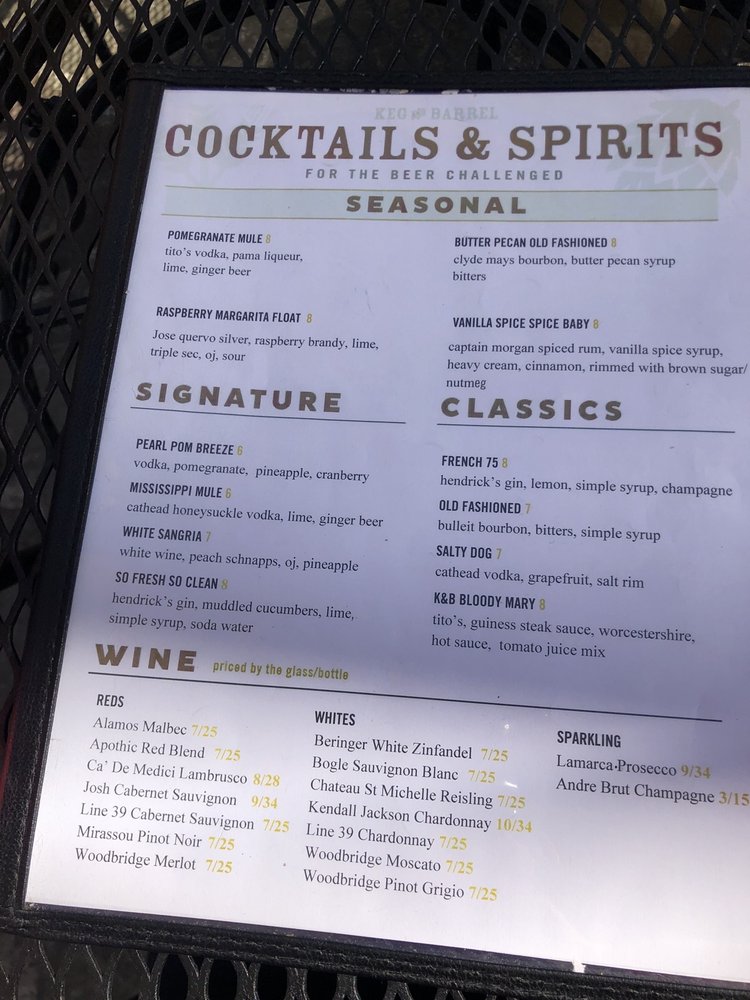 Keg & Barrel is a beloved American restaurant in Hattiesburg, MS, offering a variety of options for all types of diners. With features like takeout, outdoor seating, live music, and a full bar, it's the perfect spot for a casual hangout. The menu boasts vegan and vegetarian options, as well as classic favorites like Steak Frites and Chicken and Waffles. Customers rave about the food and drinks, with favorites being the fried catfish and delicious chicken buffalo salad. The atmosphere is described as fantastic, making it a great place to unwind and enjoy some good eats. Whether you're looking for a quick bite or a night out with friends, Keg & Barrel is sure to satisfy your cravings.